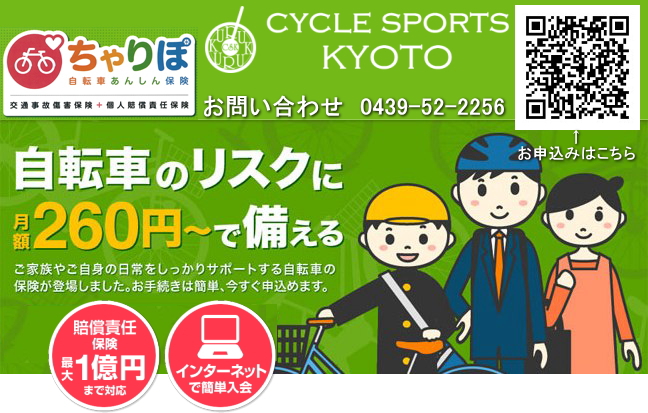 千葉県サイクリング協会(CCA)は、サイクリングの健全な発展と普及、会員相互の親睦を深めることを目標に、千葉県を中心にサイクリングイベントやセミナーを開催などの活動を行っています。 【保険以外のCCAの 特典】 ① 年 4 回会報「ちばりんりん」が届く。 ② CCA主催イベントでの割引参加費、優先参加など ■補償内容■ ■個人賠償責任保険金額:1億円 ■傷害入院保険金日額:5,000円 ■障害通院保険金日額:3,000円 ■傷害死亡・後遺障害保険金額:474.9万円 ■示談交渉サービス サイクリングなどを目的に自転車を購入されたサイクリスト方にお勧めの会員制度です、毎年補償内容は見直しされていますので詳細はこちらでご確認ください。 |